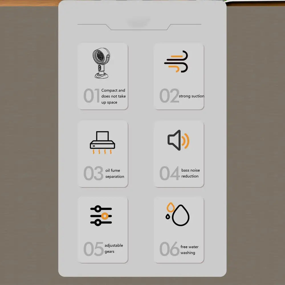 Compact and Portable: No need for bulky, permanent installations. The MiniAir Suction Hood is lightweight and easy to move wherever you need it, making it ideal for small kitchens, camping trips, and even outdoor picnics.