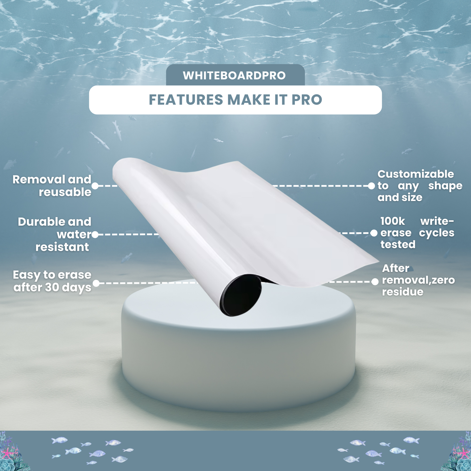 Upgrade your space with a seamless, clutter-free alternative to traditional whiteboards. Whether you need a flexible workspace for professional meetings or an interactive learning tool, this whiteboardPro sticker adapts to your needs.Reimagine your walls with the WhiteboardPro Sticker Sheets—the modern, space-saving solution for productivity and creativity.